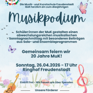 Mit viel Herz, Fleiß und musikalischer Begeisterung hat unsere Musik- und Kunstschule (MuK) am Regionalwettbewerb „Jugend musiziert“ in Remchingen teilgenommen. Die tollen Leistungen unserer Schülerinnen und Schüler wurden mit einem 1. Preis mit Weiterleitung sowie mehreren 1. Preisen und 2. Preisen belohnt.